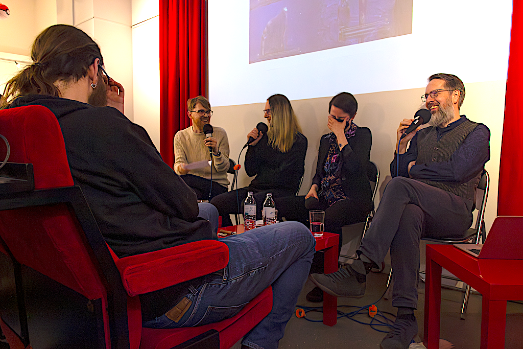 Zusammen mit uns waren auf der Bühne: Unsere Kollegin, die Journalistin Lara Keilbart,  sowie Nina Kiel, die immer mal wieder bei uns zu Gast ist, meist um uns über die Vorzüge von Visual Novels aufzuklären oder mit uns über Zugänglichkeit im Spiel zu diskutieren.